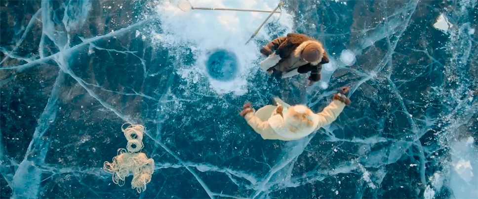 В фильме происходит нечто похожее. Папа Давид привозит сына Леню погостить к дедушке на Байкал, надеясь, что это поможет ребенку пережить утрату мамы. Отношения мальчика с отцом натянутые после смерти мамы. Дедушка решает свозить внука на рыбалку на Байкал. Уже на льду озера, в нескольких часах езды от берега, дед с внуком попадают в пургу. Их "уазик" глохнет, и, чтобы не замерзнуть, дед и мальчик решают идти пешком сквозь снежную бурю по льду. Поняв, что дед и сын потерялись, Давид бросается на их поиски. Но куда идти, если вокруг ночь, стужа и свист ветра? Бушующая стихия в фильме становится метафорой шквала эмоций, переполняющих героя после потери близкого человека. С первых кадров фильм завораживает своей красотой, а напряжение во время бури, когда герои теряют друг друга, не отпускает.