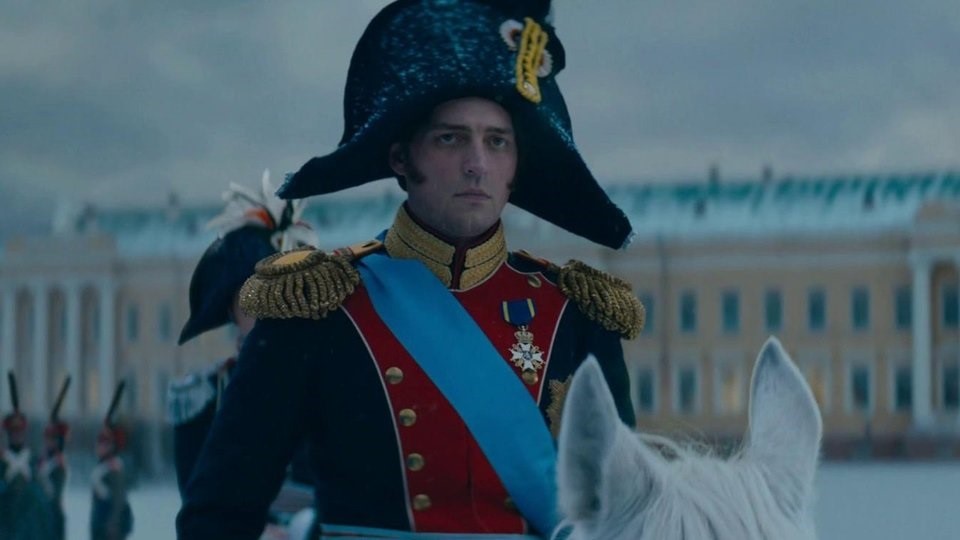 Михаил СперанскийВпрочем, в сериале он покровительствует Русско-Американской компании, в которой служит и Рылеев, так что "глядение на Запад" этих двоих несомненно. Возможно, в сцене скандала за обедом, когда в тарелку Сперанскому бросили пулю, скрыт толстый намек на то, что все потрясения в нашей стране приходят "оттудова". Рылеев еще и выведен вполне себе корыстолюбивым, имеющим большие виды на обогащение посредством фрегата, который будет-де совершать трансокеанские рейсы из России в США и наоборот и доставлять дефицитные товары. В общем, от советско-школьного образа "рыцарей свободы" не осталось ничего. Каховский так попросту отморозок, ему лишь бы стрелять во все, что шевелится, и товарищей своих он к этому призывает на Сенатской: ранив Милорадовича, с бранью обрушивается на офицера, который "дал уйти" свежекоронованному Николаю Первому.