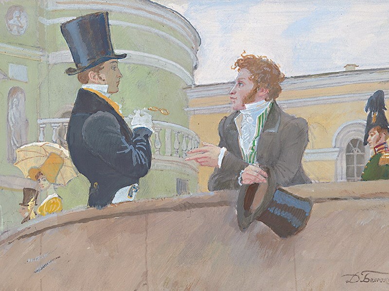 На выставке будут представлены рабочие зарисовки и тщательно проработанные эскизы, инструментарий художника и сам роман в стихах А.С. Пушкина с иллюстрациями Д.А. Белюкина, в 2002 году выпущенный издательством «Андреевский флаг». Показаны гравюры XIX века, модные листы, старинные книги с изображениями русских усадеб, видов Москвы и Петербурга 1810–1820-х годов, а также другие редкие документы, которые художник изучал в РГБИ.