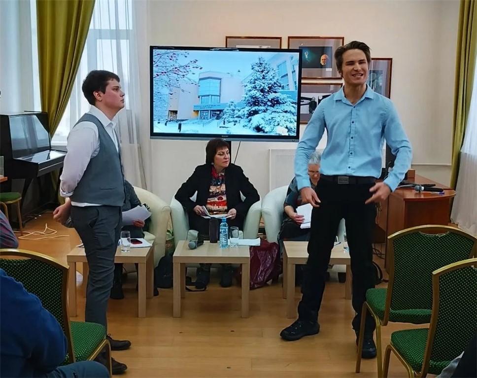 Бессменные ведущие – поэты Татьяна Бочарова, Ирина Курицына и критик Елена Сафронова решили провести вечер молодой и брутальной мужской поэзии Рязани не как обычный разбор поэтических чтений в режиме онлайн, а как шуточный поэтический батл на приз звания Рязанского князя поэтов (потому что королей поэтов было уже много, а князь отличается тем, что это всегда правитель-воин). Классический формат рэп-батла подразумевает, скажем мягко, раскованность, не сочетающуюся с библиотекой. Уже поэтому мы затевали не батл как таковой, а игру в батл. Однако пригласили для участия поднаторевших в рэп-состязаниях молодых рязанских авторов Александра Шалопая и Соловриона (Олега Быценко; имена сценические). Оба отлично владеют сценическими приемами: декламацией, мимикой и жестами, перформансами, в общем, смотрелись артистично.