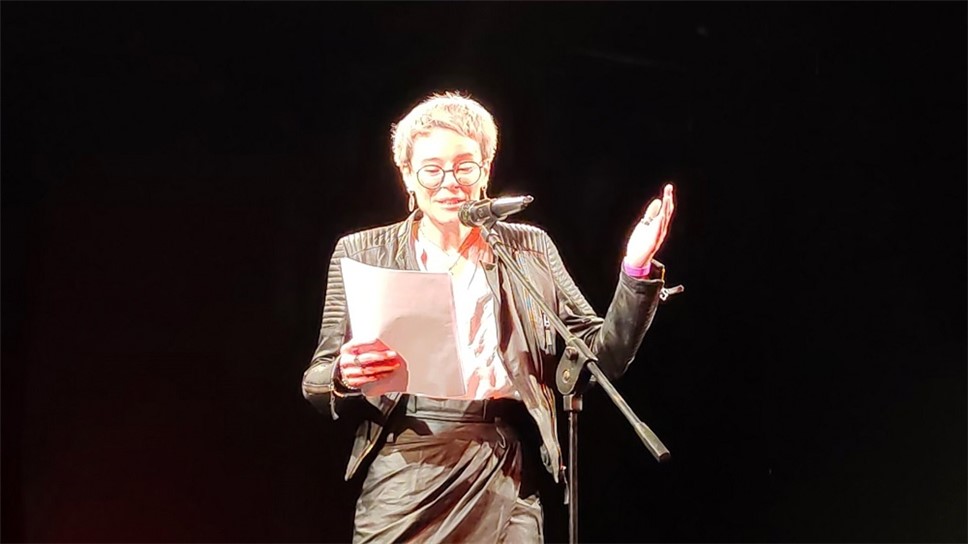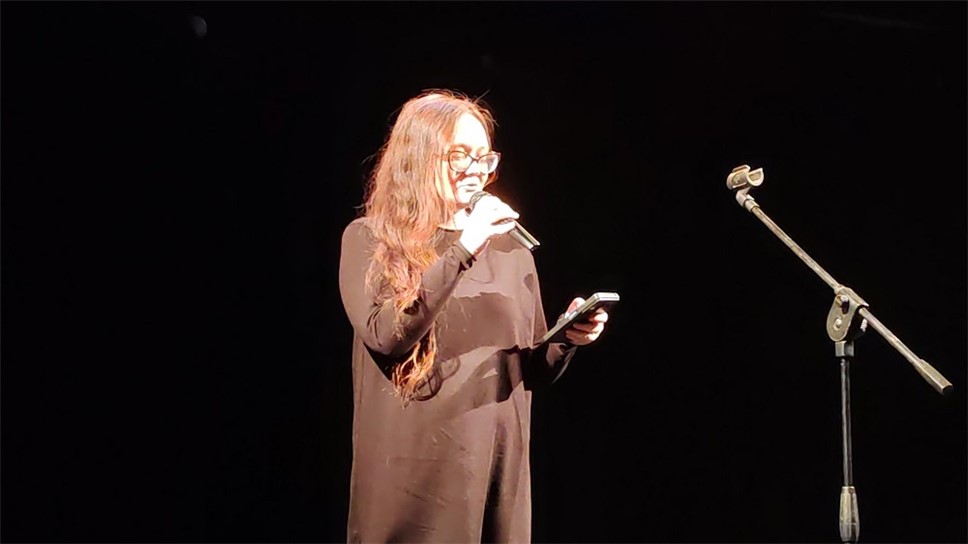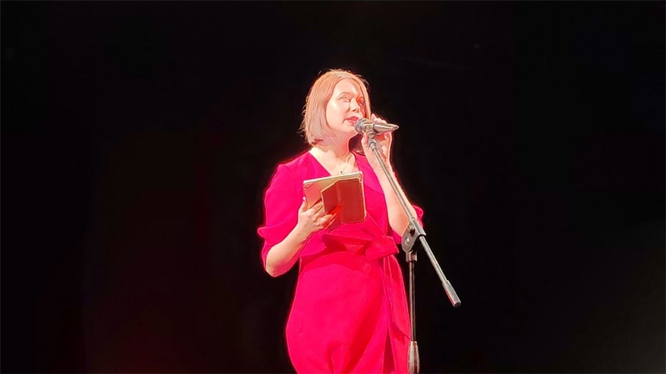 "выходишь на берег, и там тоже сидит поэт". Это, по признанию выступающей, она сама и есть. Матасова прочитала три стихотворения, одно из которых объединяет всех поэтов, "людей красоты":