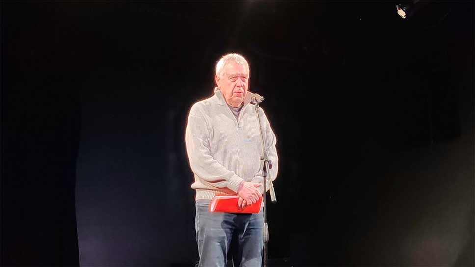 "всегда интересны те, кто идёт за тобой и на смену тебя". Выступающему приятно, что в зале он видит молодёжь, которая у него и у Анны Гедымин выступает в семинарах. Геннадий рад тому, что многие продолжают заниматься "этим тяжелым и не очень благодарным делом, то есть поэзией". Автор прочёл три своих стихотворения, начав со знаменитого