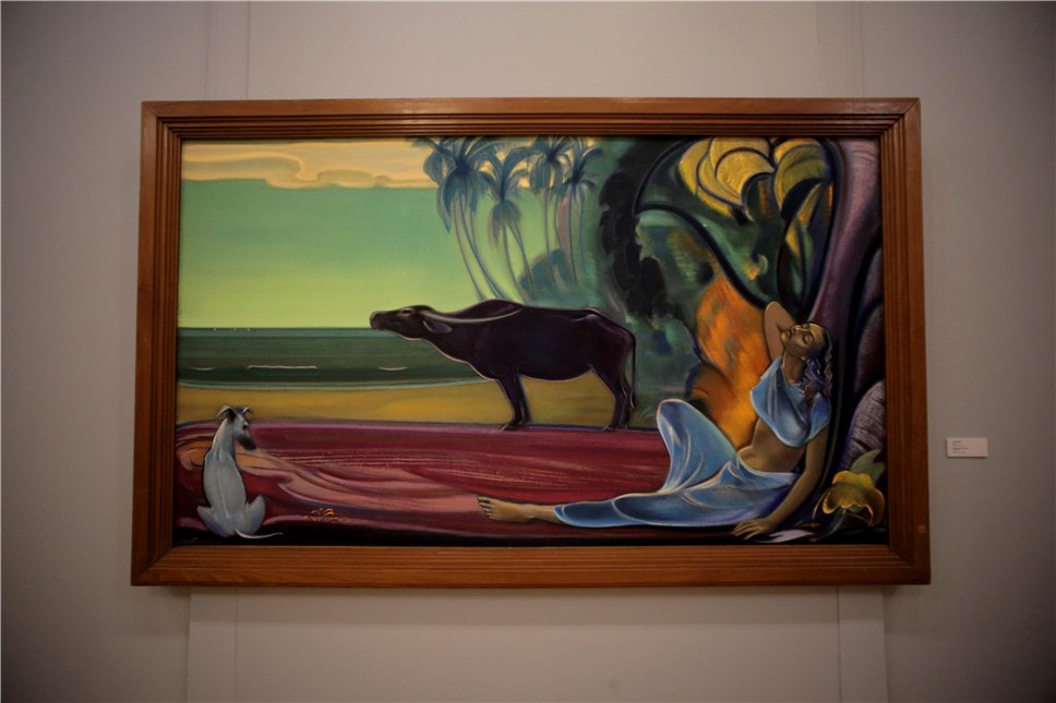 "Гармония земной жизни". Жизнь в среде необычно природы, где находился художник, помогла создать что-то необычное. На первый взгляд кажется, что это обычная бытовая зарисовка жизни. Но на самом деле можно понять и проследить магию, которой наполнены полотна. Образы передают глубокие символы, которые исходят из культуры Индии.