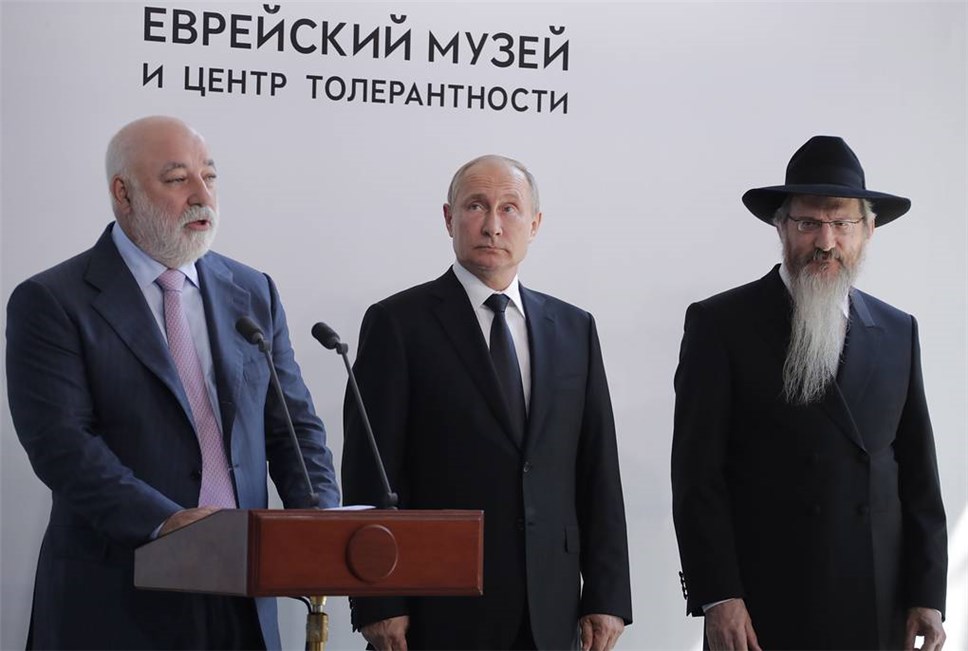 Председатель совета директоров группы компаний "Ренова" Виктор Вексельберг, президент РФ Владимир Путин и главный раввин России Берл Лазар. Фото: ТАСС