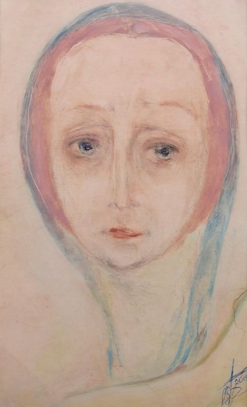 Создавая свои картины, Виктор Бердаков использует вместо красок театральный грим, а вместо кисти — пальцы рук. Эту необычную технику рисования он открыл для себя еще в детстве. По словам автора, он пишет не портреты, а образы, которые приходят случайно.