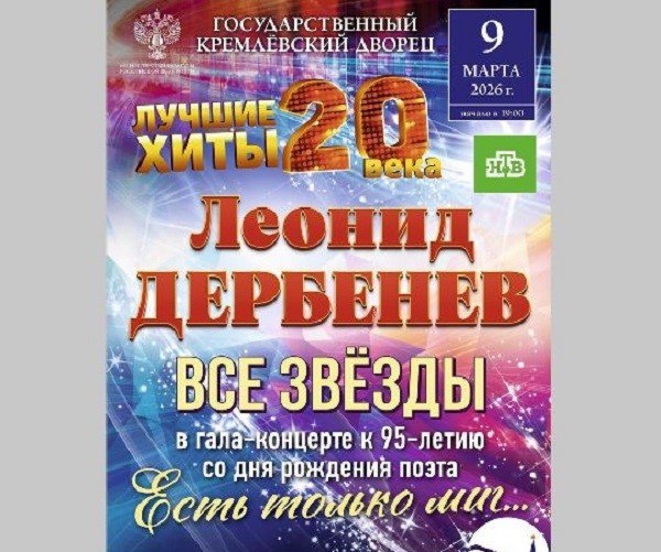 9 марта 2026 года в Государственном Кремлёвском Дворце состоится гала-концерт "Есть только миг между прошлым и будущим", посвященный творчеству поэта-песенника Леонида Дербенёва и приуроченный к 95-летию со дня его рождения.