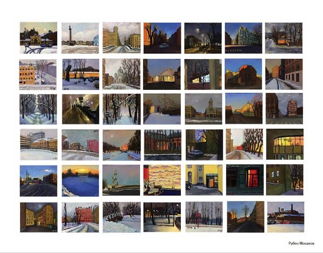 В экспозицию вошло около 1000 работ художников, графиков и скульпторов. Разместить такое большое количество произведений в одном пространстве стало возможным благодаря их формату 10 на 12. Каждый из авторов предоставил серию картин на произвольную тему. Работы складываются в единый блок, который представляет собой отдельное законченное произведение, как и каждое входящее в него полотно. Все они могут быть выполнены в разных техниках, отличаться по стилистике и тематике.
