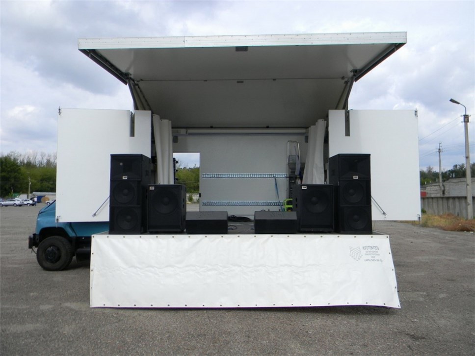 Комплекс был спроектирован по индивидуальному заказу: у него есть автономный дизельный источник питания, уличный светодиодный экран прокатного типа, звуковое и осветительное оборудование и трансформируемая сцена размерами почти восемь на семь метров. Он приобретен в рамках исполнения распоряжений Президента России об освоении средств, выделенных из резервного президентского фонда на социально значимые объекты и мероприятия.