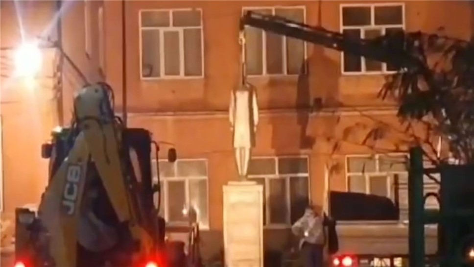 Памятник Зое Космодемьянской стоял во дворе одной из школ города. Фигуру разделили на две части, после чего неустановленные лица краном подцепили верхнюю часть за шею и сняли с постамента. Происходящее символично пересекалось с мученической кончиной Зои от рук фашистов.