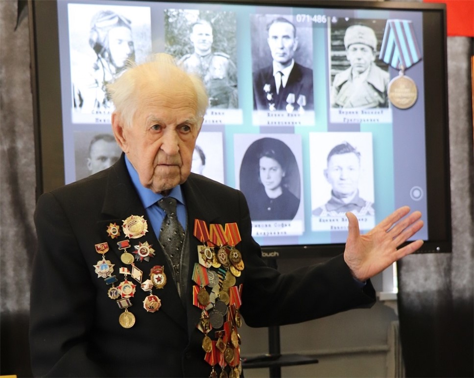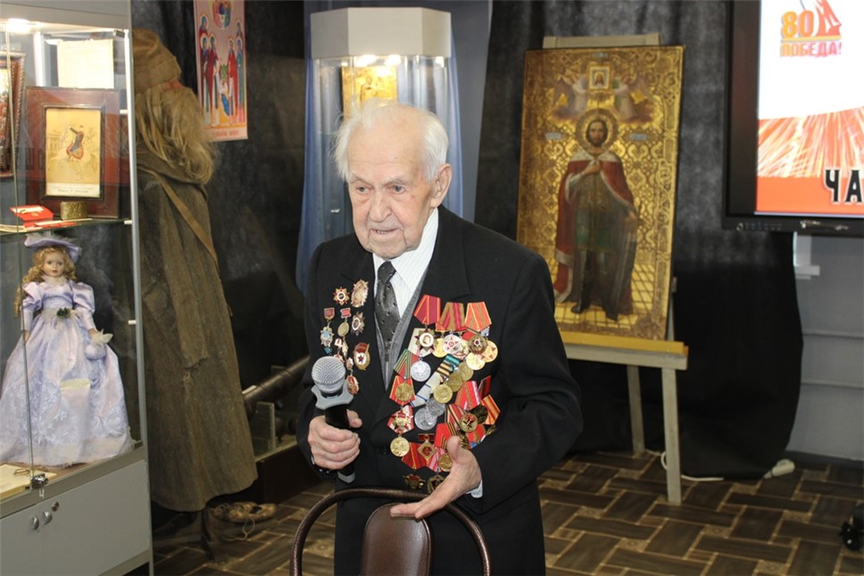 В.Г. Рогушков в музее рассказывает о боях под Кёнигсбергом, в которых он принимал непосредственное участие (из архива музея).