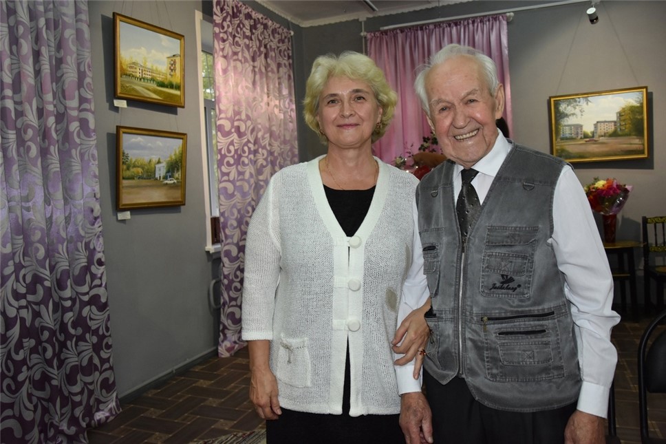 С. Дурягина с В.Г. Рогушковым на выставке его картин в Чагодощенском музее в честь 95-летия художника (фото из личного архива автора).