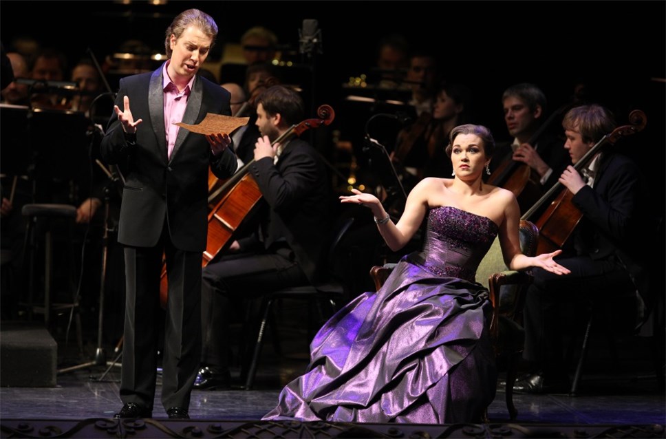 Конечно же, в концертном исполнении оперы чуть ли не одним из главных действующих лиц становится оркестр, которым дирижирует Михаил Татарников. Звуки соло-инструментов виолончели, валторны и трубы сливаются с мелодикой скрипок и контрабасов, рисуя единый гармоничный звуковой узор в сочетании с голосовой игрой актёров.