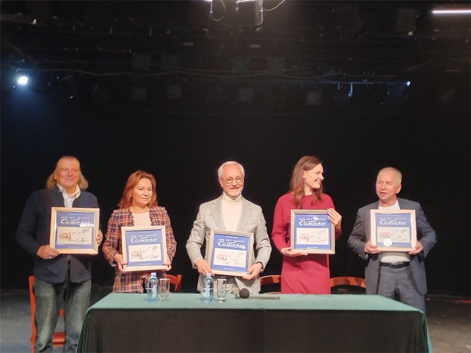 И вот марка погашена. И какая красивая! На ней — четыре легендарные маски, символизирующие театральные жанры, а также историческое здание, увенчанное узнаваемым круглым куполом. Такие изображения выбраны для маленькой марки — настоящего произведения искусства, выпущенной тиражом в 500 тыс экземпляров. В будущем, как надеются артисты, она станет настоящим сокровищем для филателистов. Ведь в театре провели конкурс, выбирая художника. Победил лучший. И о театре теперь смогут узнать граждане нашей страны в самых ее отдаленных уголках.
