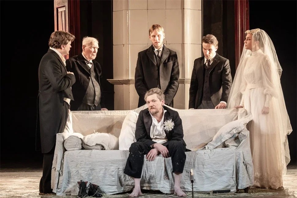 Женовач не обманул нас. Действия в спектакле практически нет. Алексей Вертков спит на диване, остальные герои подходят к нему, разговаривают с ним и уходят. Вот и все.