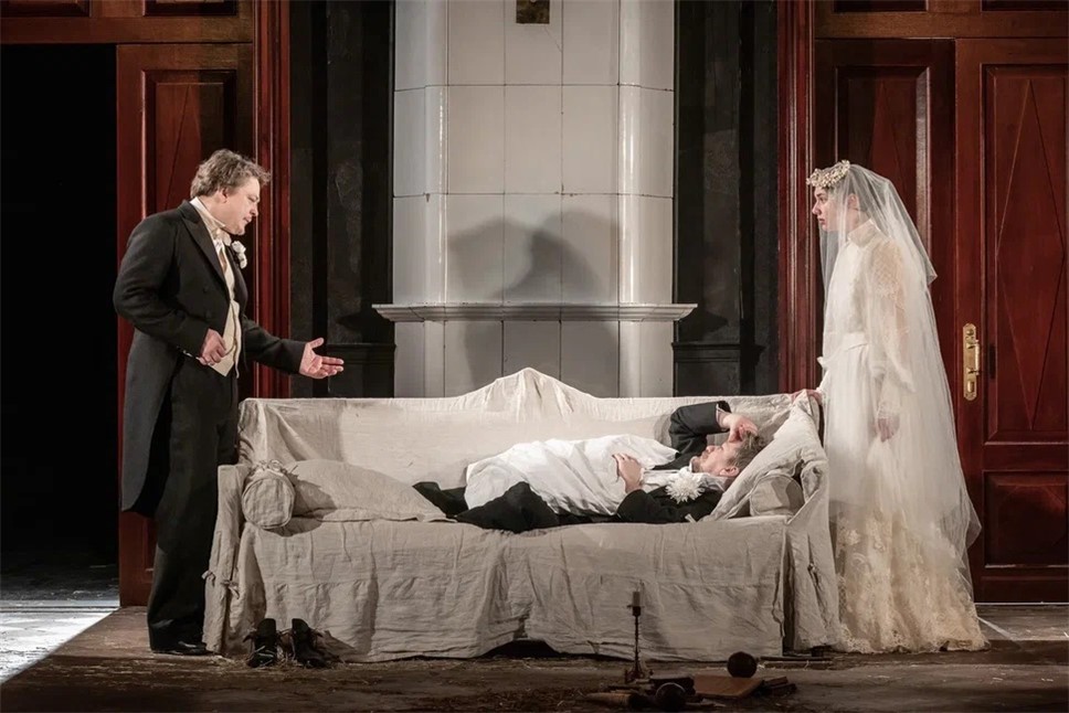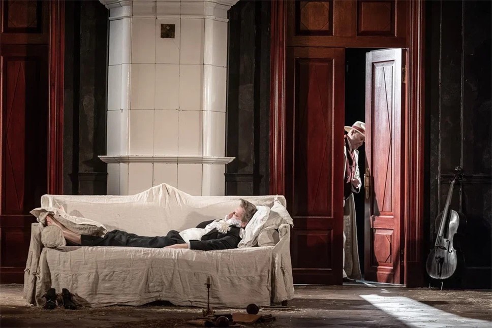 Во время сна он мог выглядеть пристыженным, смелым, равнодушным и еще много вариантов. Кто-то, наверное, увидит в этом действии обычную русскую лень, кто-то пустоту, кто-то – попытку уйти во внутреннюю эмиграцию, кто-то – равнодушие. По мне, так однозначного объяснения "сна" Иванова нет. Женовач ловко жонглирует решительно всеми качествами.