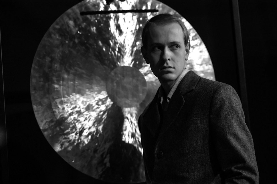 И вот на сцене появляется главный герой Илья Козырев — он в сером костюме. Точно так же, как и декорации, он почти неотличим от фона. Даже фоновый рисунок с пейзажами Испании не яркий, а серый, как и все остальное.