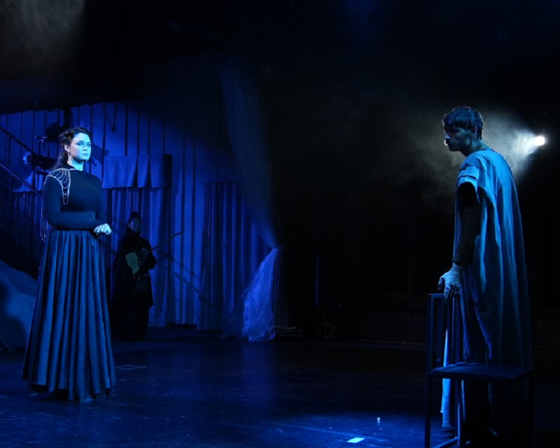 В целом – очень интересная работа, хорошо продуманные мизансцены, а самое главное, приятно, что Никита Шаманов по-настоящему понимал смысл произносимого им текста. Это было видно. А его диалог с ведьмами – настоящая отсылка к античной трагедии: сочетание Протагонист – Хор.