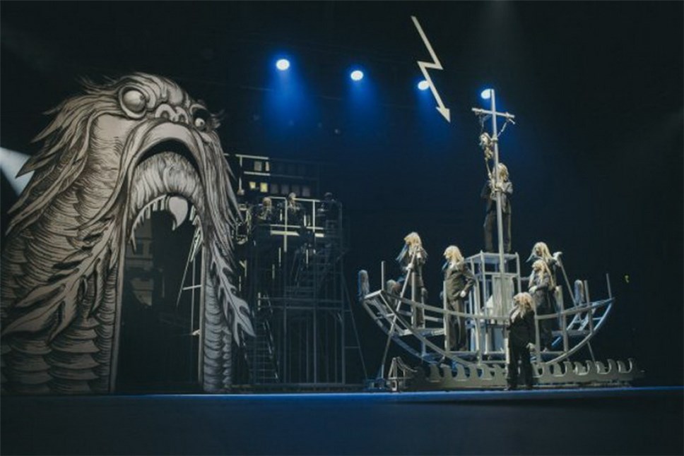В спектакле используются и мультимедийные технологии. Так, принц Дженнаро деловито рассказывает историю о том, как его брат убил несчастного ворона, указывая на анимированные картинки на опустившемся из-под потолка экране.