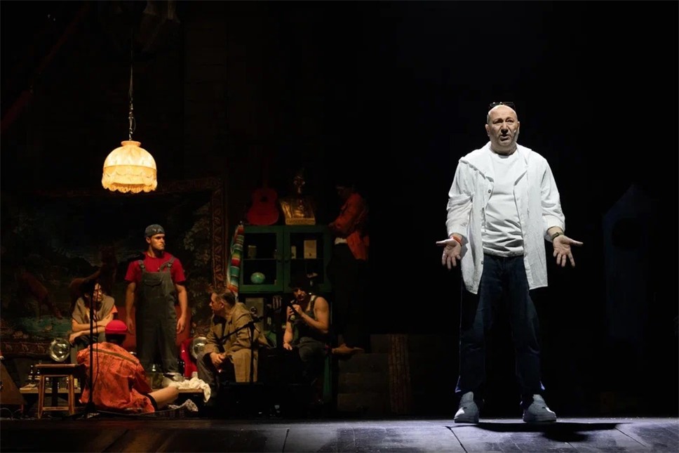 Более-менее интересен был момент с Царем, но и он вывернут максимально беззубо. Такое ощущение, что текст прочитал ну очень аккуратный цензор – и вырезал оттуда решительно все намеки о том, кого же называют Царем. Например, была фраза, что в бане был рояль и царь захотел на нем сыграть... И играл он какую-то импровизационную мелодию. Нет, ребятки, Царь играл конкретную мелодию. И название ее мы, сидящие в зале, знаем. А драматург почему-то боится произнести.