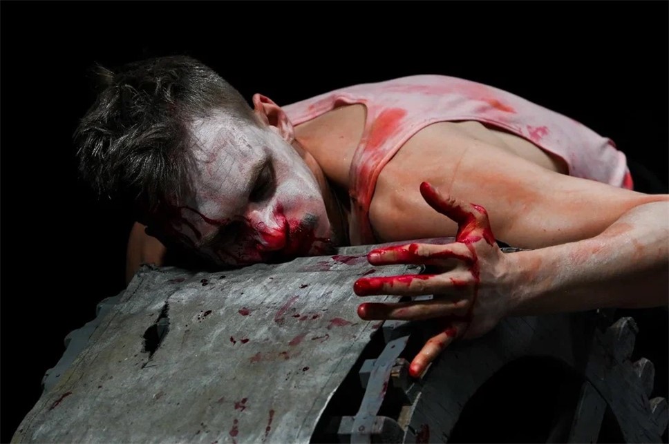 Перед началом нас предупредили, что в спектакле активно используется ненормативная лексика, но это только часть трэша. Кроме мата, там отрубают головы коту и гусю (бутафорским), заливают чуть ли не всю сцену кровью и демонстрируют массу различных неполиткорректных вещей (избивают инвалида, 90-летнюю женщину в маразме и т. п.).
