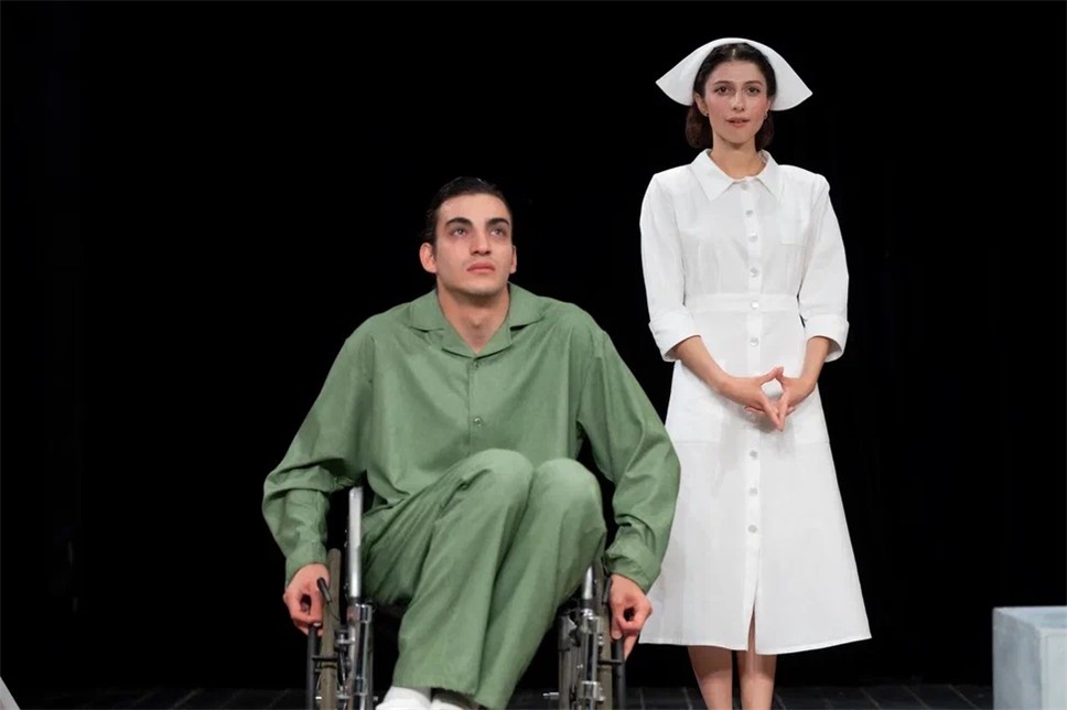 В результате — начало развалено полностью. Лучшими в первом действии были Ян Юй (Вождь Бромден) и Павел Хайкин (колясочник Сефелт). Обе роли без слов, без действия. Один на коляске, второй все время стоял посередине сцены, как памятник. И то и другое выглядело максимально цельным. Разве что отрешенности во взглядах не хватило.