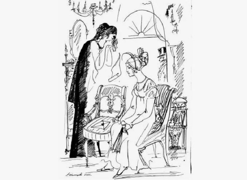 Графика А.С. Пушкина. Роман "Евгений Онегин". Татьяна и Ольга. Фото: ru.pinterest.com