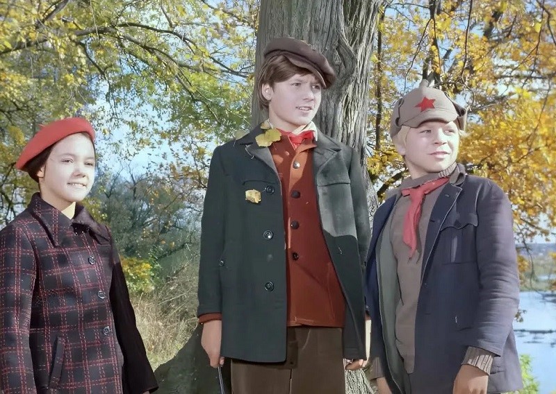 Кадр из фильма "Кортик", 1973 год. Фото из открытых источников.К детским детективам можно отнести еще и цикл романов о приключениях Кроша, Серёжи Крашенинникова: "Неизвестный солдат", "Приключения Кроша", "Каникулы Кроша". Правда, смысл их был не столько в разгадывании загадок, сколько в демонстрации правильного социального поведения советского школьника. Так, в книге "Неизвестный солдат" Серёжа установил личность бойца Великой Отечественной, покоящегося в могиле, вскрытой при строительстве дороги, и сообщил об этом матери и дочери погибшего. Недаром "Приключения Кроша" в советском кино экранизировали не раз.