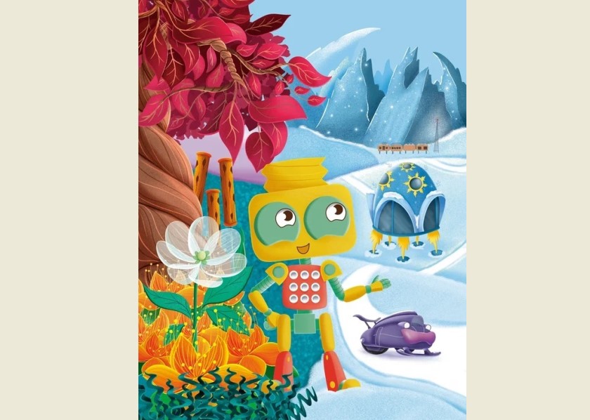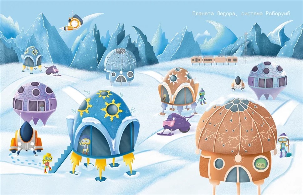 "На окраине Роборумба кружится планета-ледышка. Сиреневая звезда Робус освещает её, но теплом не достаёт. Планета сверкает и искрится в сиреневых лучах, как самоцвет. Одна половина покрыта льдом, а другая — снегом. И называют её Ледора".