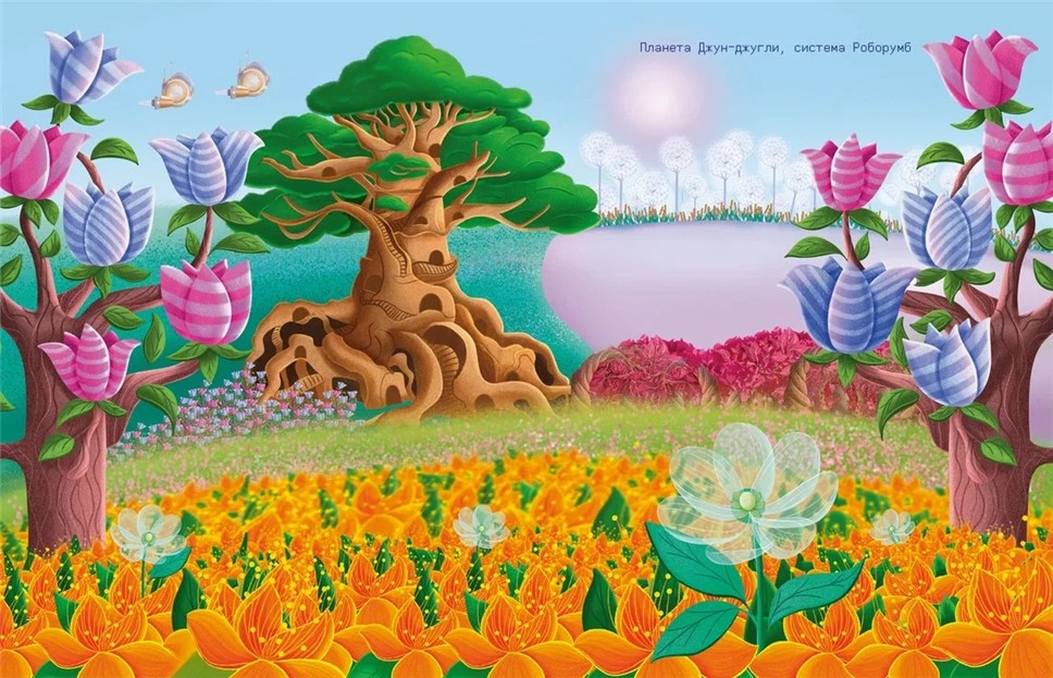В этой книжке моё восхищение вызывают сразу несколько вещей. Полёт авторской фантазии, не ограниченной земными пределами и скучным реализмом. Как, например, поэтичны описания Ледоры или живого леса на планете Джун-Джунгли! Судите сами: