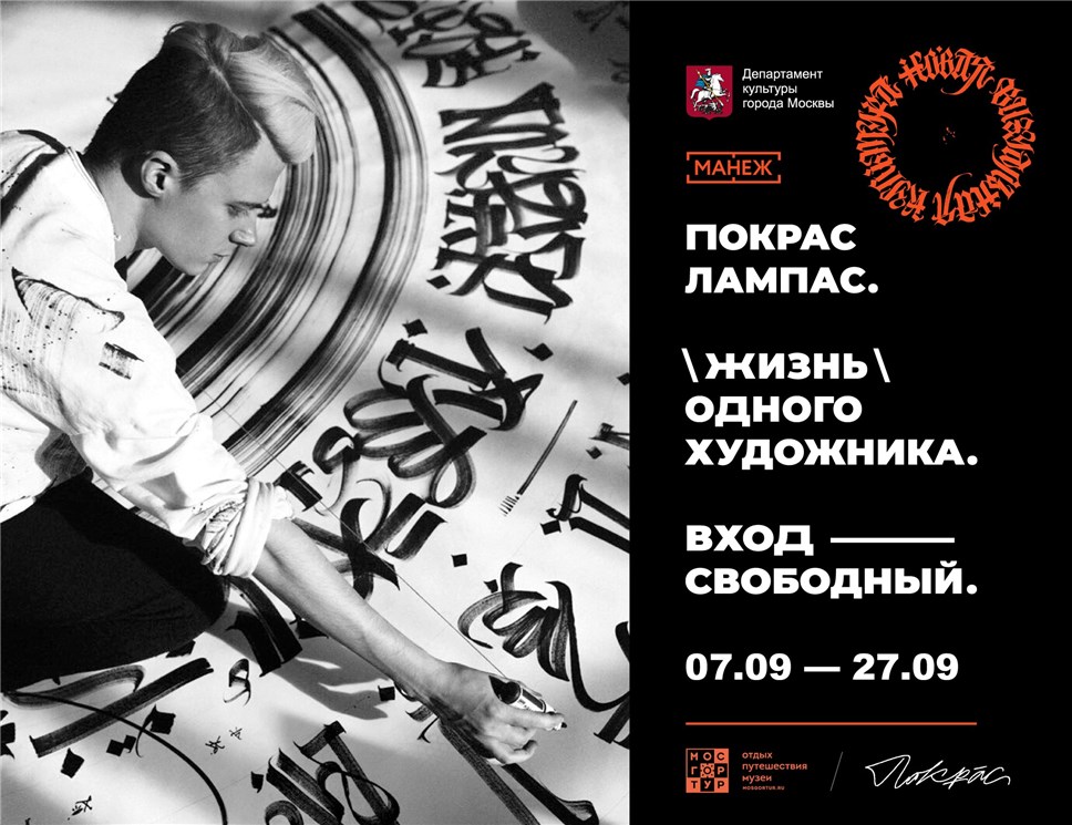 Традиционная академичность Нового Манежа трансформируется в экспериментальное пространство современного художника, являя собой непрерывный перфоманс. В течение 20 дней Покрас Лампас будет находиться на территории выставки, одновременно работая над холстами, инсталляциями и манифестом. Открытая мастерская будет функционировать в привычном для художника междисциплинарном формате – помимо мольберта и холстов здесь расположится фэшн студия и co-working пространство, в рамках которого к творческому процессу присоединятся известные российские модели, фотографы, блоггеры, друзья и коллеги художника.