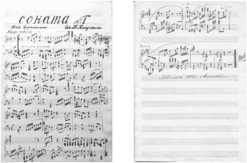 Первая и последняя страницы сонаты для фортепиано №1, 1952 г.Фото: там же.