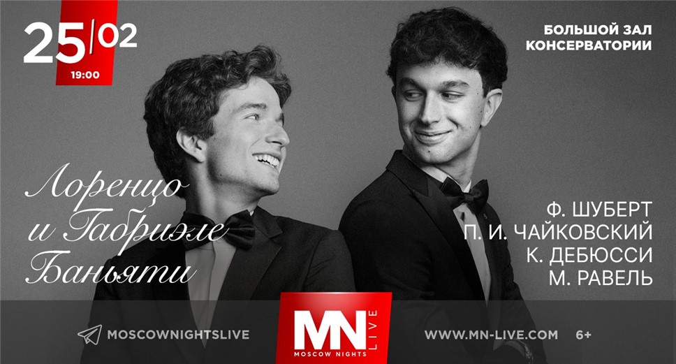 Концерт 25 февраля — редкая возможность услышать в Москве один из самых перспективных и харизматичных фортепианных дуэтов молодого поколения, сочетающий итальянский темперамент и русскую фортепианную школу, виртуозное мастерство и глубокую эмоциональность.