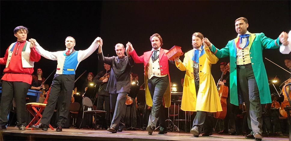 Во время оркестровых интермедий на заднике сцены крутились кадры кинохроники. Мелькали Шостакович, Ростропович, Вишневская, их совместные поклоны после концертов. Особенно забавно было видеть идею режиссера, когда на моменте звучания блестящей оркестровки музыки "Молнии", Шостакович бесконечно раскланивался направо-налево в повторяющемся кадре. Эти реверансы нисколько не умаляли истинного величия композитора. Наоборот, мудрый и скромный гений выражал мысль, дескать, с меня не убудет, если я склонюсь, но не моя музыка. А музыка даже в незаконченных сочинениях Дмитрия Дмитриевича великолепна и должна исполняться. Исполнение двух незавершенных опер силами Оперного центра прошло на должном уровне.