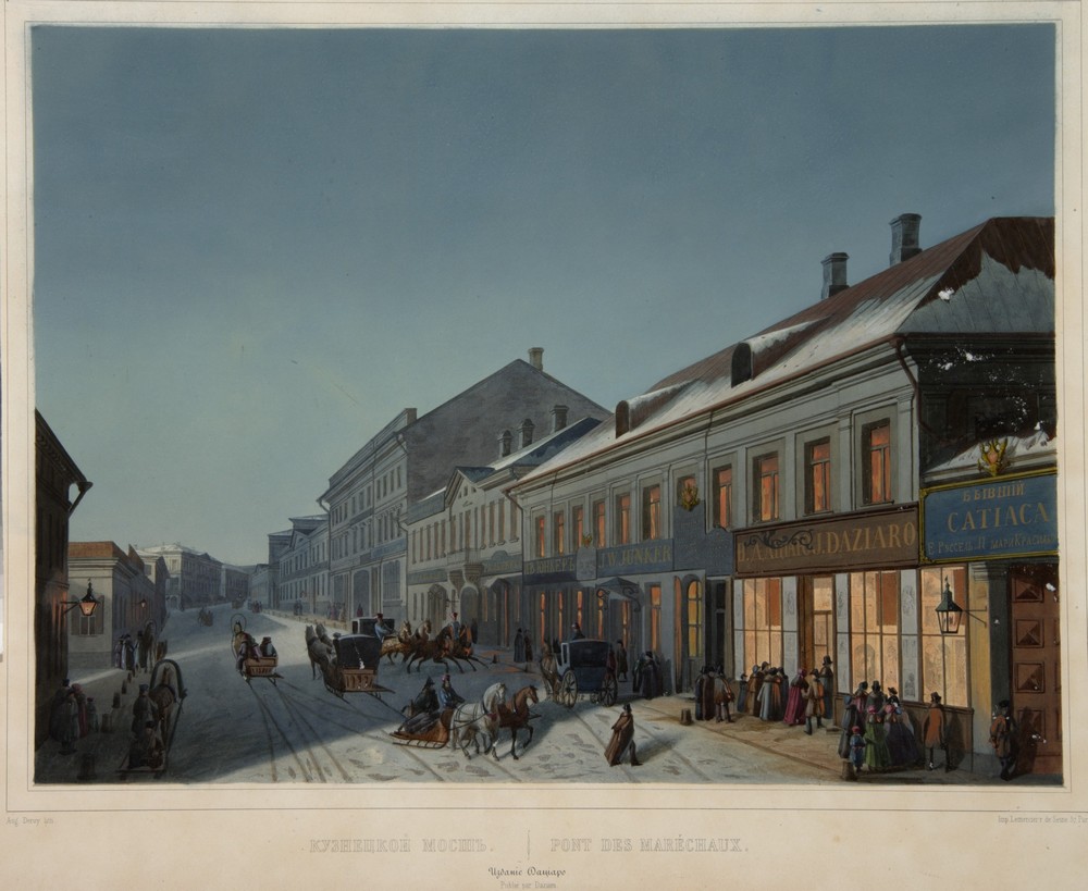 Фирма Дациаро, начинавшая с двух небольших магазинов на Кузнецком мосту и Лубянке в Москве, к 1840–1850‑м годам превратилась в крупное предприятие европейского масштаба, выпускавшее литографированные серии, которые расходились по всей России и за ее пределами – от Лейпцига и Амстердама до Лондона и Парижа. Отличительной чертой изданий Дациаро стало уникальное сочетание западноевропейской полиграфической техники и глубокого, неподдельного интереса к русской истории, архитектуре и повседневной культуре. Издатель умел соединять запросы взыскательной отечественной публики, увлеченной национальным прошлым, с европейской модой на «русское», возникшей после победы над Наполеоном. В результате его литографии стали не просто коммерчески успешным продуктом, но и своеобразной визуальной энциклопедией николаевской эпохи.