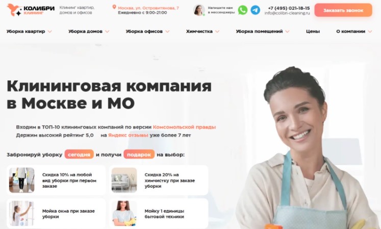 У Колибри есть одна штука, которую сложно подделать: рейтинг 5.0 на Яндексе, который держится больше семи лет. Когда оценки стабильно высокие на длинной дистанции - это уже про культуру, а не про везение. Компания небольшая по сравнению с федеральными сервисами, и в этом ее козырь: тут скорее запомнят, какой кран у вас подтекает и что кота зовут Барсик, чем в конторе с тысячей клинеров. Камерный формат позволяет держать планку: каждый клиент - на виду. Работают с частниками и с бизнесом, берутся за рестораны, салоны и торговые площади - но жилой клининг остается визитной карточкой.