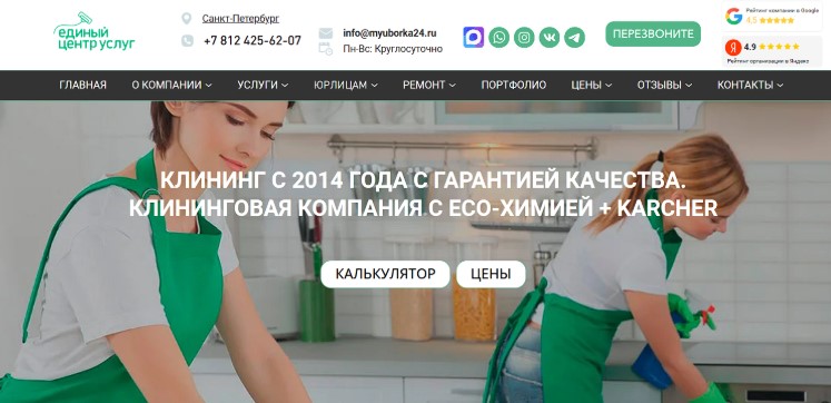 ЕЦУ - компания, которая начинала как бригада из трех-четырех человек, а выросла в полноценную службу с девятилетним стажем и внушительным списком выполненных объектов: квартиры, склады, офисы, магазины сетевой розницы, яхты и даже объекты культурного наследия. Такой разброс - признак того, что компания умеет адаптироваться под задачу, а не просто повторять один и тот же алгоритм. Отдельно стоит отметить работу с фасадами - ЕЦУ делает промышленный альпинизм, что для частного клининга экзотика, а здесь - рабочая рутина. Более 300 отзывов на Яндексе и Google, рекомендательные письма от корпоративных клиентов. Из нюансов: сайт перегружен информацией и непросто найти нужное - будьте готовы звонить менеджеру напрямую.