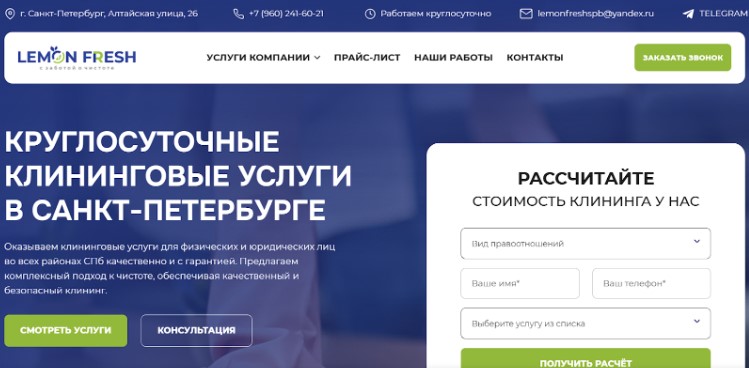 Lemon Fresh - компания, которая старается работать "на качество, а не на поток". Принцип "беремся только за то, что точно сделаем хорошо" встречается в клининге редко: обычно говорят "да, мы все можем", а потом выясняется, что могут не все. Здесь, если задача нетиповая, менеджер скажет об этом заранее. Работают круглосуточно, минимальный заказ - 6 000 рублей, что отсекает совсем мелкие задачи, но для полноценной уборки квартиры порог адекватный. На 2ГИС - высокая оценка при хорошем количестве отзывов.