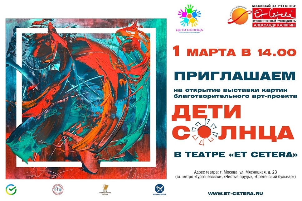 С 1 по 28 марта в театре "Et Cetera" пройдет выставка абстрактной живописи в рамках благотворительного арт-проекта "Дети Солнца".