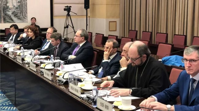 Члены Общественной палаты Российской Федерации на официальной встрече с главой и членами Экономического и социального совета Китая.