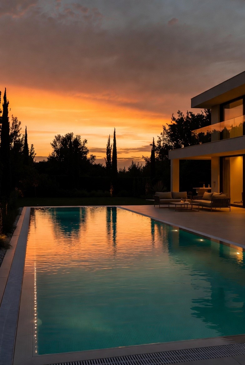 Для загородного дома часто выбирают уличный бассейн с подогревом, накрытием и системой фильтрации. Для коттеджей с баней, SPA или отдельной зоной отдыха подходит бассейн для дома с круглогодичным режимом эксплуатации. Ошибка здесь в том, что многие сравнивают эти решения только по цене чаши, не учитывая совершенно разные расходы на инженерную часть.