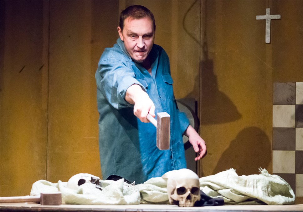 Главный герой спектакля "Череп из Коннемары" – МОГИЛЬЩИК. Спустя семь лет он вынужден извлечь останки своей жены, погибшей при весьма странных обстоятельствах. Но для обывателей городка он остается единственным подозреваемым… Тонкий психологизм, абсурдная неразрешимость ситуации, "черный" юмор – все это обещает настоящий триллер, который не оставит равнодушным даже самого искушенного зрителя.