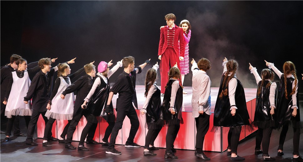 Удивительно талантливые ребята отдавались происходящему на сцене со всем жаром младых душ и сердец. Начинающие артисты, буквально, упивались выступлением, заряжая энергией зрителей - таких же ребят. Работал актёрский молодняк на триста процентов - компетентно, мастерски, с пониманием своих сценических задач и очень мотивированно. Слаженность и отточенность выполнения непростых танцевально-ансамблевых номеров, массы перестроек мизансцен, перемены мест солистов, дуэтов, трио, массовки и т.д. добавили огненной динамики действу.