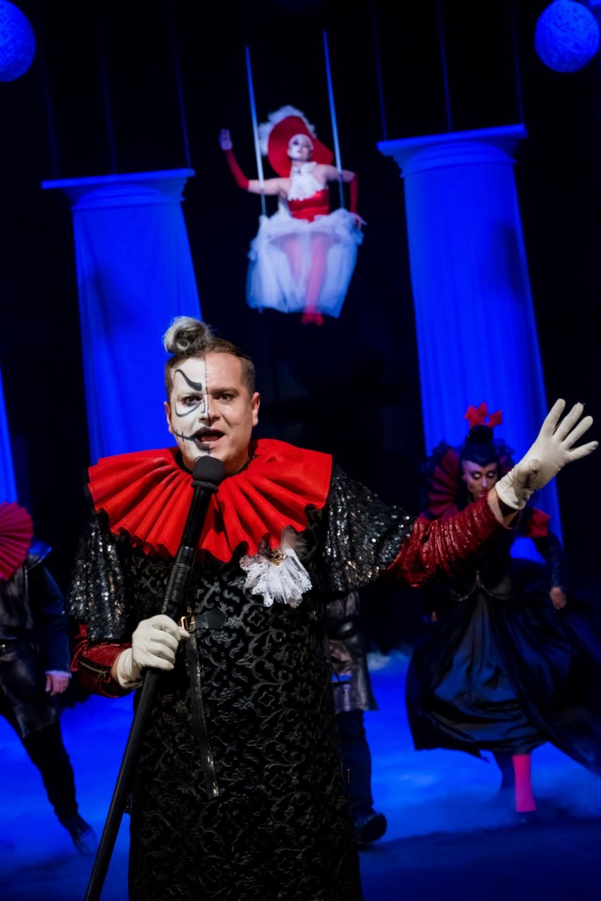 Эти артисты не только дают завлекательные представления, но и ссорятся между собой совсем как живые работники сцены. Каждая кукла-актриса считает себя примадонной, каждый кукольный актер настаивает на своей исключительной гениальности. Если мастер и не смог вложить в кукол человеческие достоинства, то пороки в них инсталлированы по умолчанию. Об этом как будто гласит странная песня, исполняемая хором кукол, из которой запоминается бессчетно повторяемый рефрен: "Никого не жалко, никого, ни меня, ни тебя, ни его". Толкований у этой фразы примерно столько же. Даже в рамках спектакля: куклы могут признаваться в собственном бездушии, жаловаться на бессердечность кукольника, который их не щадит, или же констатировать, что такой закон царит во всем мире, то есть что люди и андроиды действительно одного поля ягоды.