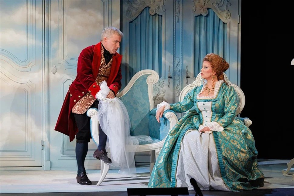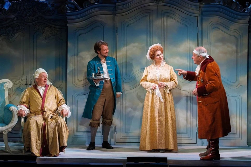 Сам спектакль получился легким, размеренным. Камерная атмосфера малой сцены дает ощущение, что находимся мы где-то при дворе, мы не современные люди, а зрители 18 века, и сама императрица наблюдает не только за тем, что происходит на сцене, но и за нами тоже.