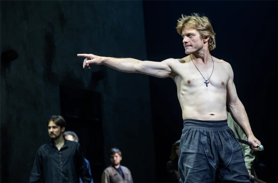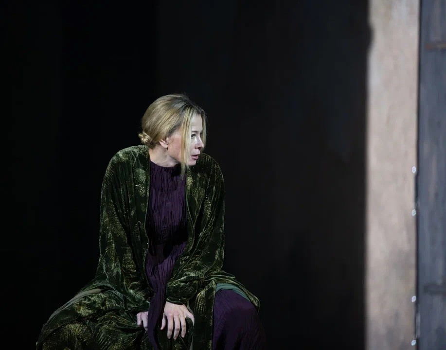 Причем Юлия Высоцкая в роли леди Макбет воплощает достаточно сложную амбивалентность персонажа. В её схематичной интерпретации героиня — не просто демоническая искусительница, а почти феминистка-карьеристка, мечтающая подняться на ступеньку выше в иерархии. Ее истерическая сила рождается из отчаяния и веры в "великую цель" – стать королевой. Даже по росту она выше Макбета-Ткачука — что уже концептуально. Актриса пытается подчёркивать трагическую глубину образа, но невольно уходит в тень перед кавказскими страстями мужа и его окружения.