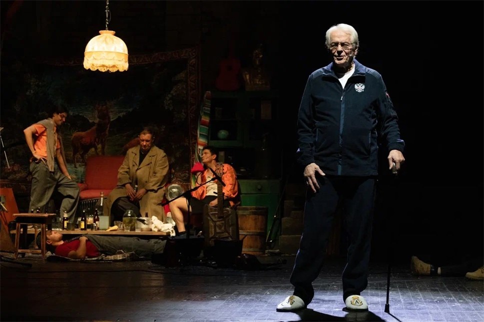 Более-менее интересен был момент с Царем, но и он вывернут максимально беззубо. Такое ощущение, что текст прочитал ну очень аккуратный цензор – и вырезал оттуда решительно все намеки о том, кого же называют Царем. Например, была фраза, что в бане был рояль и царь захотел на нем сыграть... И играл он какую-то импровизационную мелодию. Нет, ребятки, Царь играл конкретную мелодию. И название ее мы, сидящие в зале, знаем. А драматург почему-то боится произнести.