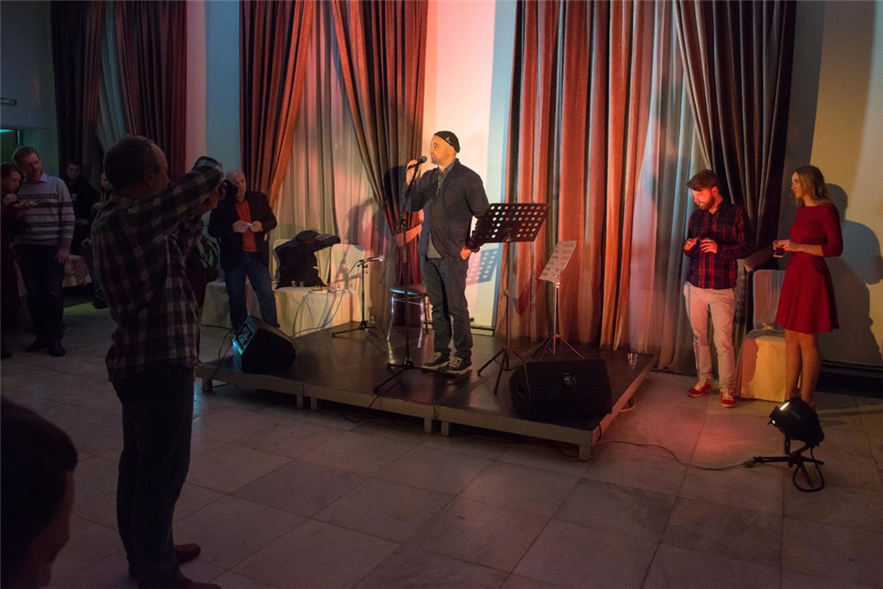 Ведущим вечера стал Влад Маленко – художественный руководитель “Московского театра поэтов”. Не обошлось без розыгрыша. Влад поздравил всех с началом и залпом выпил… большой стакан водки. “За новый театр – театр поэтов!” провозгласил Влад, а гости затаили дыхание. “Он сейчас упадет просто. Пока Влад”, – шептались собравшиеся, а щепетильные дамы предвкушали неразбериху и безобразия. Однако, если не считать неразберихи с входными билетами и нехваткой мест, то все было на уровне. И Влад Маленко тоже, как ни в чем не бывало, чуть позже вышел на сцену. Встречал гостей и принимал поздравления, как говорится, ни в одном глазу. Перформанс на тему “мастерство не пропьешь” и развенчание мифа о пьющих поэтах определенно удался.