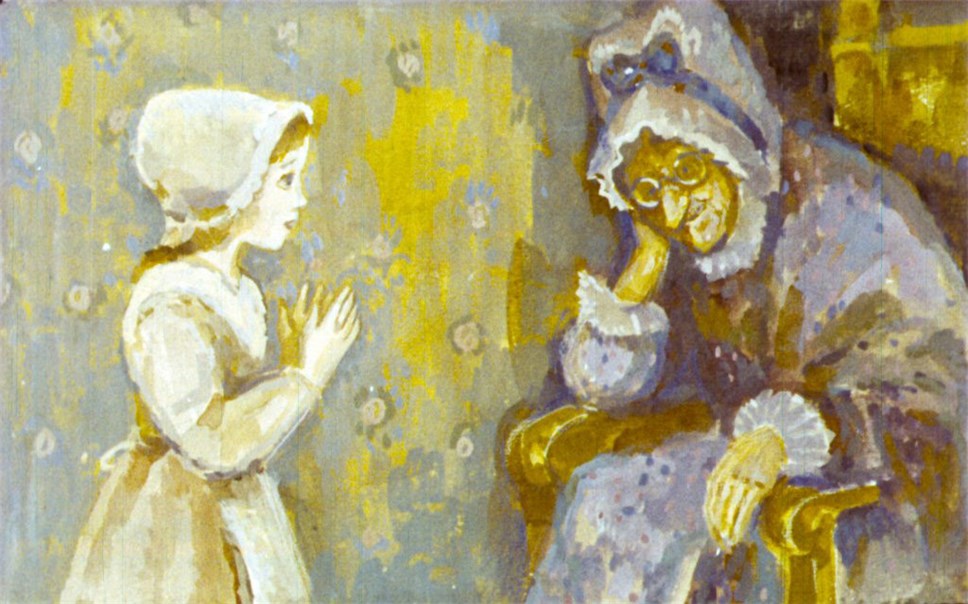 "Госпожа метелица" по сказке Братьев Гримм, где волшебница — госпожа Метелица, появившаяся из колодца, награждает добрую и трудолюбивую девушку, а ленивой и злой тоже воздаёт по заслугам. Как принято в сказочных сюжетах, злая девушка — это родная дочь матери, а добрая — падчерица.