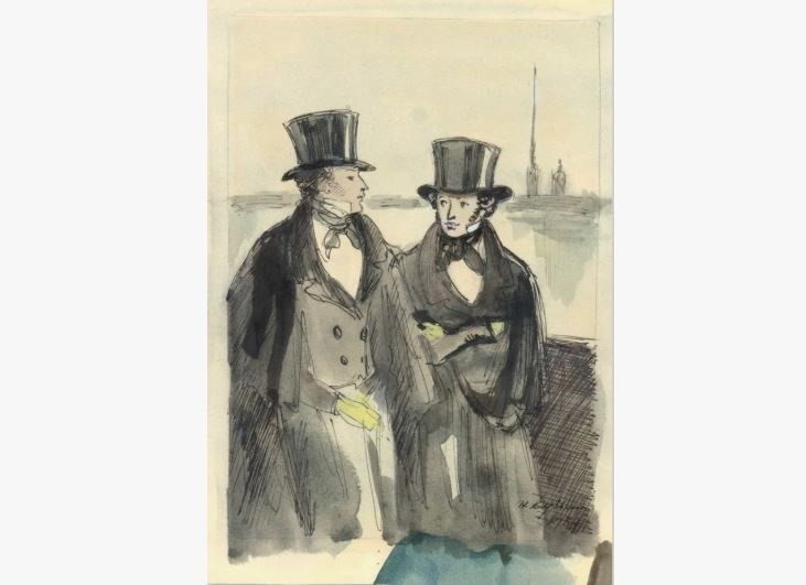 Графика А.С. Пушкина. Роман "Евгений Онегин". Татьяна и Ольга. Фото: ru.pinterest.com