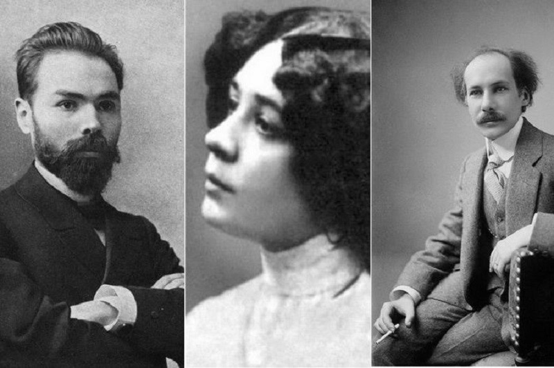 Валерий Брюсов, Нина Петровская и Андрей Белый. Фото: at.pinterest.com